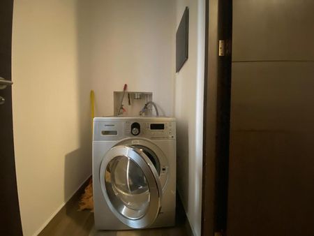 Y el área de lavado oculto cuenta con una lavasecadora y un cuarto de servicio con baño completo.