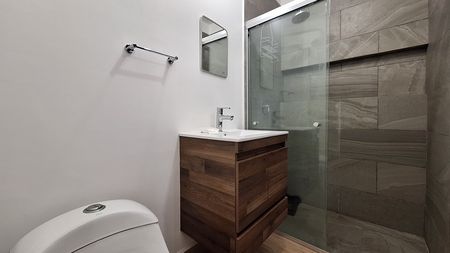 Cama matrimonial en la habitación principal con baño completo, 2 habitaciones