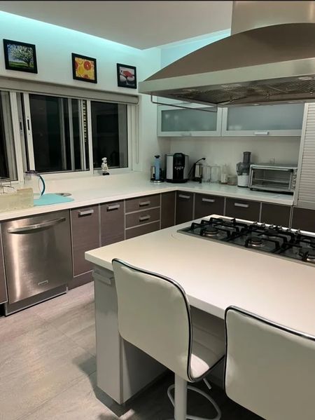 Despacho principal, y un segundo despacho que se puede hacer recámara, sala de televisión, comedor, Sala de visitas y medio baño, cocina equipada con barra para desayunar , despensa muy amplia, cuarto de trabajo y de equipos de la automatización del departamento cuarto de lavado y cuarto de servicio .