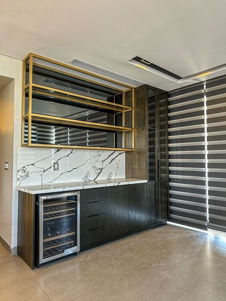 • Cocina integral de lujo con puertas de laminado y cubiertas de formaica.