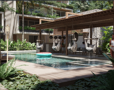 LUJOSOS DEPARTAMENTO UBICADOS EN UNA ZONA PRIVILEGIADA EN TULUM, CUENTAS CON SEGURIDAD LAS 24/7 DE LA SEMANA, ALBERCA, AREAS COMUNES, SALON DE USOS MULTIPLES Y ASOLEADEROS.