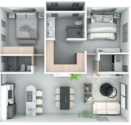 Cuenta con 24 departamentos dentro del mismo complejo, con una conexión con acceso a plaza comercial.