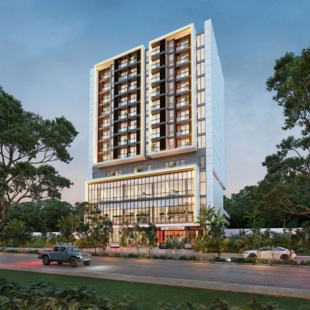 Torre Temozón es un proyecto de usos mixtos, contando con 2 bloques arquitectónicos divididos en un área de comercio junto con otra de oficinas, y la segunda parte en los departamentos residenciales conformado por 80 unidades que se encuentran a partir del nivel 6.