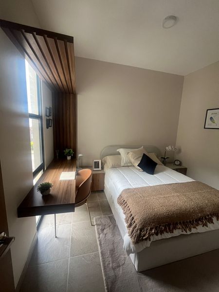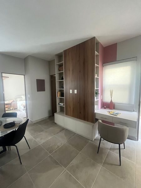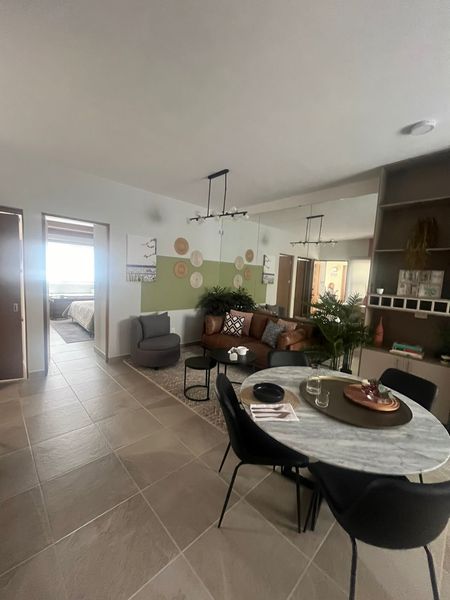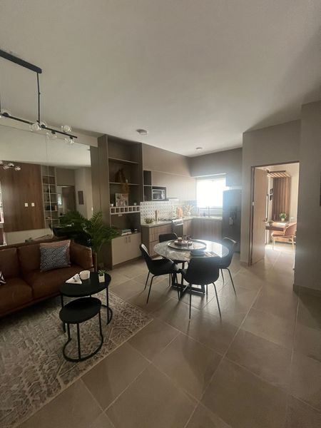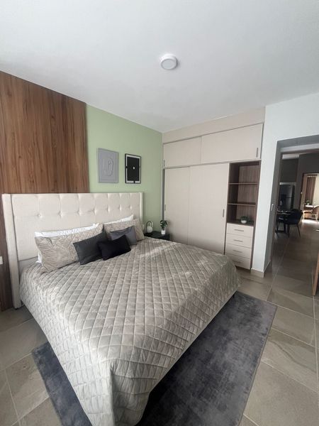 Cuenta con sala comedor, cocina integral equipada, dos recamaras, la principal con baño y walk in closet, la secundaria con closet y baño de visitas.