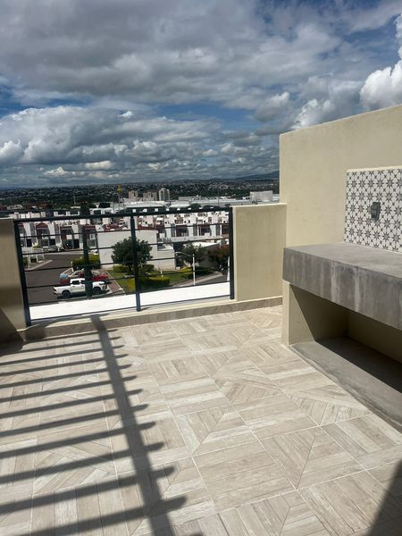 2 lugares de estacionamiento, roof garden de 32m con bodega, medio baño, barra y tarja.