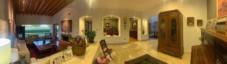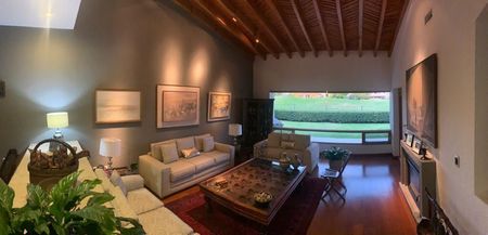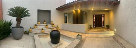 Enclavada en el residencial más exclusivo y mejor ubicado de Querétaro, se distingue por su arquitectura mexicana contemporánea rodeada por uno de los más bellos jardines con vista al campo de golf, en los más de 1,000 m2 de terreno.