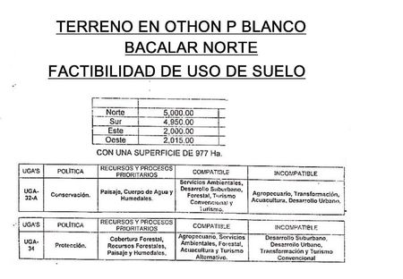 HERMOSO TERRENO EN BACALAR, PARA INVERSIO TURISTICA, CON FACTIBILIDAD DE TURISMO CONVENCIONAL Y TURISMO ECOLOGICO (ECOTURISMO), HERMOSA VISTA A LA LAGUNA DE BACALAR, SON 935 HECTAREAS PERFECTAS PARA UN DESARROLLO ECOTURISTICO O UN DESARROLLO SUBURBANO ECOLOGICO, CUENTA CON FACTIBILIDAD Y ES DE FACIL ACCESO. 1,900 MTOS FRENTE A LAGUNA