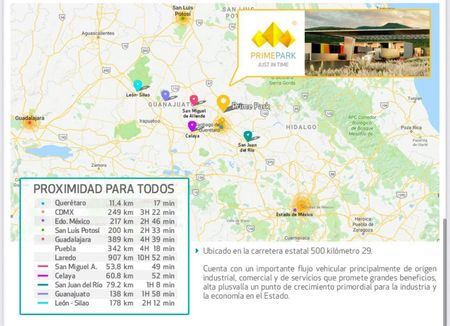 Terreno totalmente plano dentro de parque industrial Prime Park que contará con áreas comunes, area comercial, áreas deportivas y esparcimiento, áreas verdes, estación de servicios, business center, auditorio, salón de usos multiples.