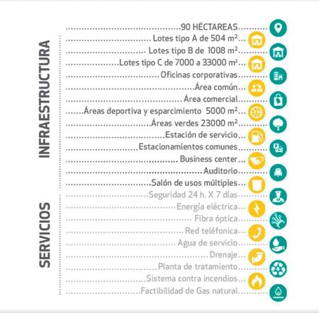 También cuenta con seguridad 24 horas, energía eléctrica, fibra óptica, red telefónica, agua de servicio, drenaje, planta de tratamiento, sistema contra incendios y factibilidad de Gas Natural.