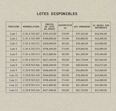 Precio por Metro Cuadrado de Lanzamiento: $1,600.00 M.N. para los primeros 4