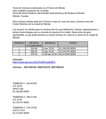 Los terrenos son ideales para la construcción de casa habitación, oficinas, departamentos o incluso hasta bodegas, por su cercania al corazon de la ciudad. Aprovecha esta gran oprtunidad, ya que practicamente no existen terrenos en venta en el centro de la ciudad de Mérida.