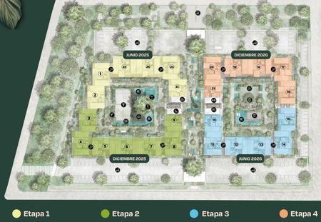 Green cuenta con 125 departamentos, distribuidos en 25 torres de 5 departamentos, con 5 modelos a elegir: