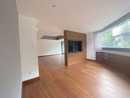 Este depto cuenta con 300 mts 2 habitables, armoniosamente distribuidos en 1 sola planta, recibidor con medio baño para visitas, desde el que conectas directamente con el área social o con el área íntima. La sala principal cuenta con area para TV y estudio, el comedor es amplio; una puerta de cristal plegable conecta al family alrededor del cual se encuentran las recamaras, cada una con baño y vestidor, la principal con tina y con isla en el walking closet. Todas lass áreas cuentan con pisos de madera, amplias ventanas permitiendo buena luz y ventilación natural. La cocina es fenomenal, con muebles y equipos de vanguardia, alacena y area de lavado y servicio integrados. Cuenta con 3 cajones de estacionamiento y 1 bodega.