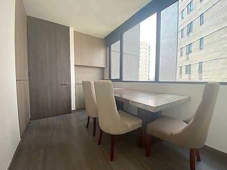 El departamento cuenta con elevador que abre directo al depto, altura a techos de 3.20mts, ventanería es térmica y acústica, semiamueblado y línea blanca basica, sala comedor con amplia terraza, family, desayunador, amplia y moderna cocina, area de lavado y cuarto de servicio integrados, 3 recamaras cada una con baño y la principal con walking closet, 3 cajones de estacionamiento