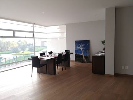 Amplio e iluminado departamento en venta en exclusivo fraccionamiento de Bosque Real. Cuenta con sala comedor con una linda vista, sala TV, 3 recámaras, la principal con vestidor y baño incluidos, la segunda y tercera recámara con vestidor y baño propios. Tiene una cocina integral con acabados de primera, zona de lavandería y cuarto de servicio. Tiene además, 3 estacionamientos.