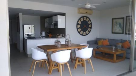 CONDOMINIO MAREIA IXTAPA- EN VENTA. Sala-comedor, terraza, cocina, cuarto de lavado y servicio con baño, 3 recámaras, terraza cubierta con sala y vista a la Marina.COMPLETAMENTE AMUEBLADO.