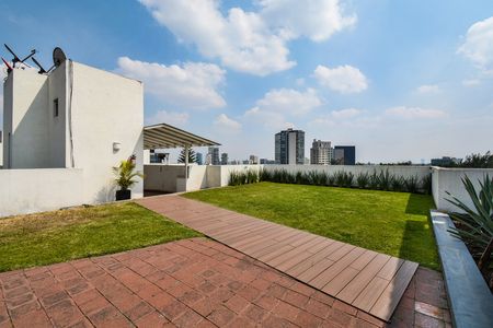 ESPECTACULAR PROYECTO CON 40 DEPARTAMENTOS MUY CERCA DEL PARQUE EL BATÁN, a unas cuadras de Periférico y Av. Revolución, muy iluminado a doble altura y con vistas verdes muy bonitas, vigilancia 24 horas. El departamento se ubica en el piso 4 y es exterior con vistas verdes. Cuenta con 2 recámaras con salida a balcón, la principal con baño completo y closet, la secundaria con closet y comparte baño con área social, cocina abierta, estancia muy amplia, área de lavado integrado y 1 estacionamiento fijo y bodega. Cuenta con ventanas con doble cristal en las recámaras. En área común cuenta con Roof Garden con 2 asadores y baños.