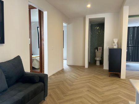 Departamento nuevo. consta de sala/comedor con terraza, sala de TV (o tercer recamara), 2 recamaras con closets de madera la principal con baño, cocina integral con cubierta de granito y patio de servicio con ventilación natural, bodega y un estacionamiento.