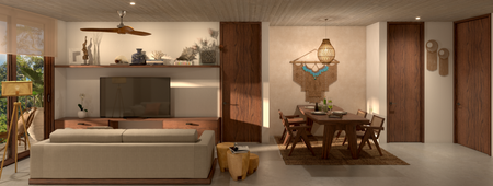 Vive la experiencia de un hogar diseñado como una auténtica obra de arte en Distrito Arte, un desarrollo único en el corazón de Aldea Zamá, Tulum, donde naturaleza, cultura y confort se fusionan en un mismo lugar.