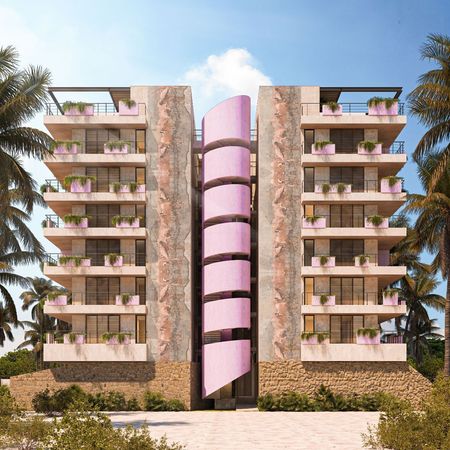 El proyecto consta de un edificio de 7 niveles más rooftop, con 37 departamentos de una o dos recámaras con vista al mar o a la reserva.