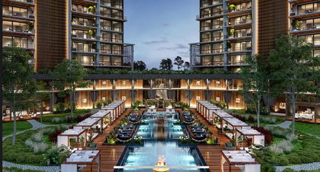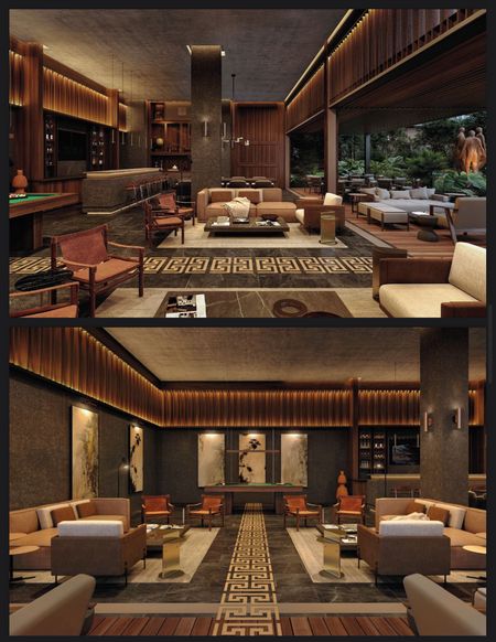 El complejo cuenta con amenidades públicas como: restaurantes, mercado de arte y diseño, spa, atelier; y amenidades privadas como: galería de arte, residencia para artistas, cava de vinos, gym, lounge bar, cine/teatro, alberca, cabañas y camastros, biblioteca, kids park, foyer, playroom, salón de eventos, bicicletas eléctricas, pet park.