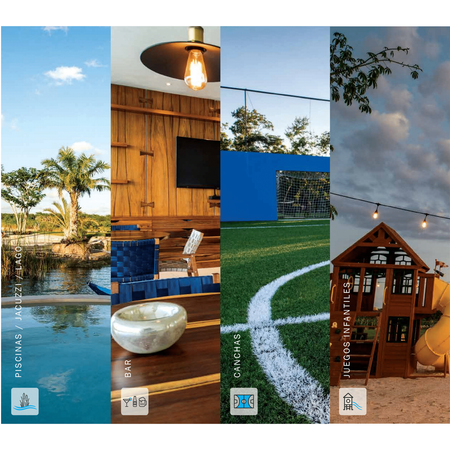-Sala de fiestas con salón cerrado y 4 áreas de terrazas (2 en planta alta y 2 en planta baja) (Parque Sur), baños y áreas de cocina.