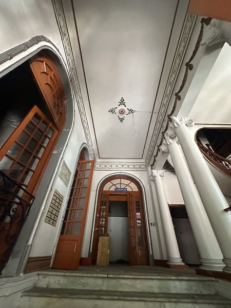 Ventanales con herrería de forja artesanal Escalera semi-espiral en la tercera crujía