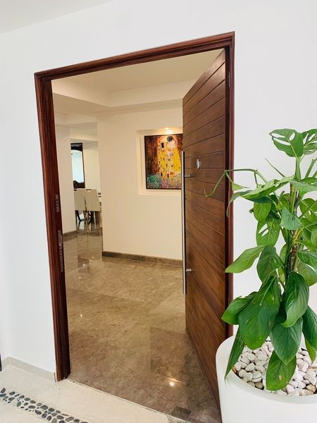 Puerta Principal de Parota con doble chapa de seguridad, timbre y cámara a UNA sola pieza.