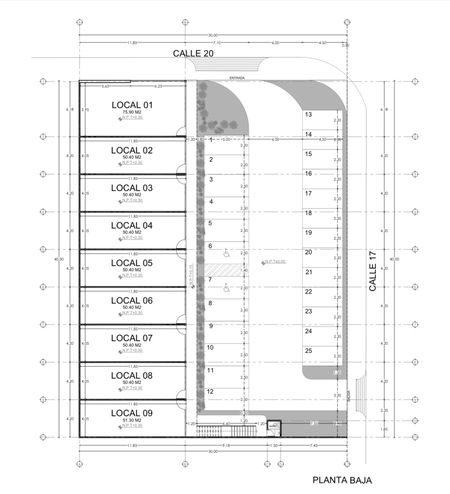 - La superficie que corresponde al local 18 es de 4.27 x 12, dando un área de 51.30 m2.