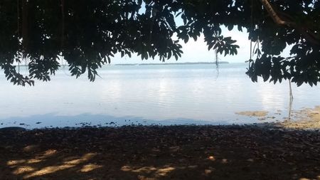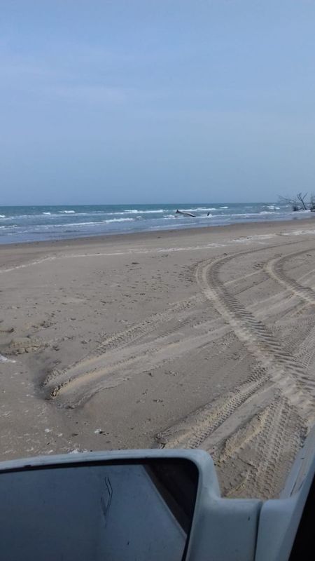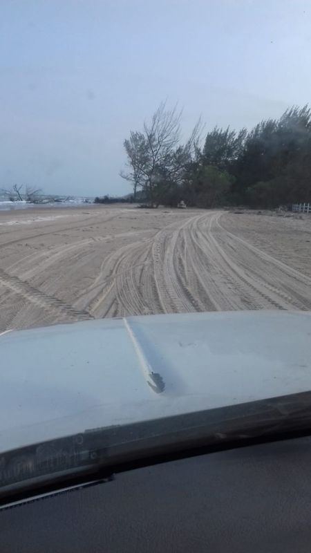 Colinda con el mar 375 metros y también colinda 375 metros con la laguna de Tamiahua.