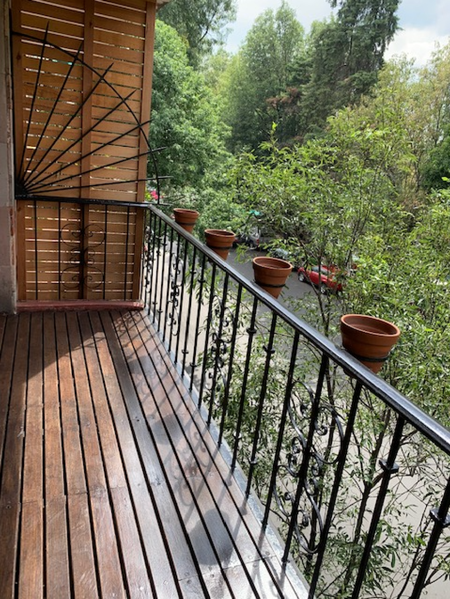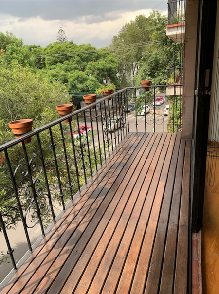 Amplio balcón en la estancia y con pisos de encino americano también.
