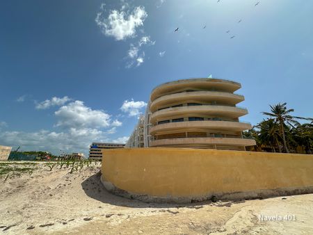Navela 401 es un penthouse que se destaca por tener vista frontal a la hermosa costa esmeralda del mar de Telchac, con dos espectaculares terrazas, un balcón y para rematar: un jacuzzi en la terraza más alta, frente al mar, sencillamente