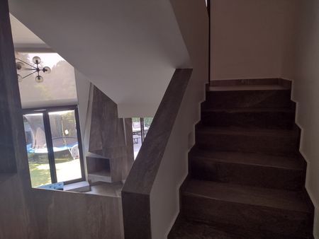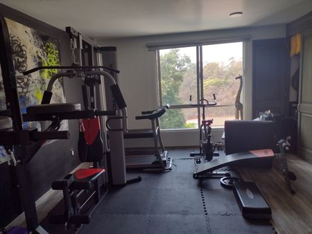 Primer nivel: recámara para estudio o gym, recámara secundaria con vestidor y baño completo.