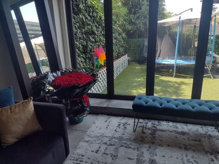 CASA EN VENTA EN BOSQUES DE TARANGO a 1 km de Av. de los Poetas, a 8 minutos de Santa Fe, de 255 m2 de construcción, totalmente remodelada, con magnífica vista verde, jardín y terraza, estancia, comedor, bar, cocina integral, baño de visitas, diseñada en varios desniveles: