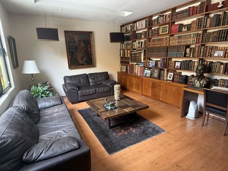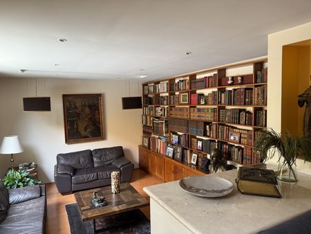 Cuenta con un cuarto de Tv, unido a una biblioteca de doble altura, con vista al patio y jardineras .