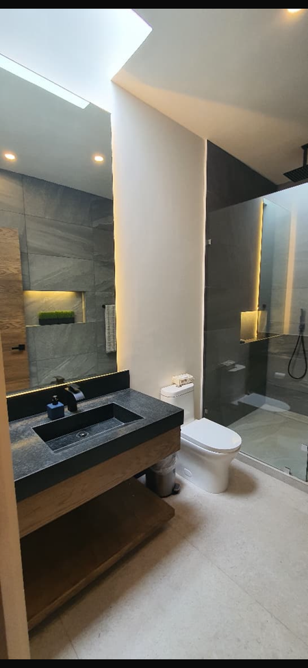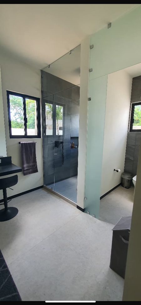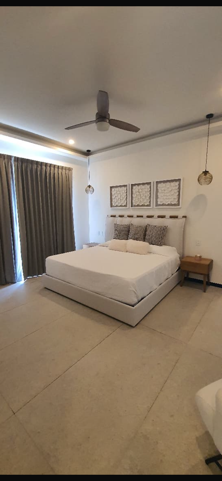 3 recámaras cada una con baño y clóset vestidor la recámara principal cuanta con aire acondicionado en vestidor ,doble ovalin ,regadera con tina (chukum),todas las recámaras cuentan con aire acondicionado