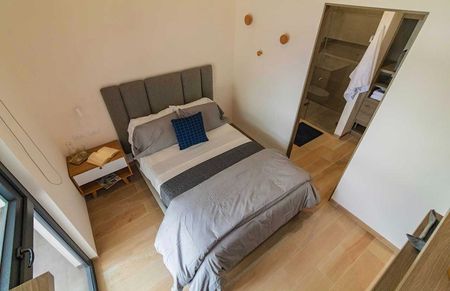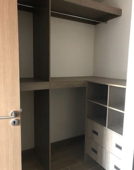 La suite se encuentra en el 3er nivel tiene 62m2, dos habitaciones cada una con vestidor y baño, estas comparten la estancia, cocina y terraza. Estan completamente amuebladas y con persianas. Cuenta con 2 cajones de estacionamiento.