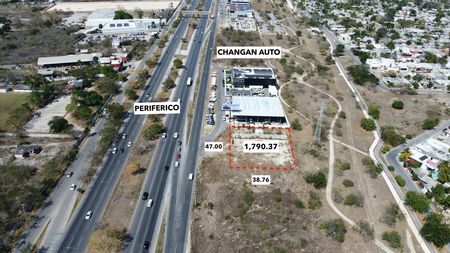 Se vende terreno comercial sobre Periférico de Mérida, justo al lado de la agencia Changan. Su excelente ubicación lo hace ideal para inversionistas que buscan desarrollar un proyecto de alto impacto. Superficie: 1,790.37 m² (47m x 38m)