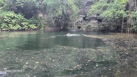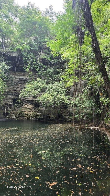 El terreno cuenta con un Cenote abierto, con un diámetro aproximado de 45 mts; cenote abierto, agua cristalina azul, con mucha profundidad, aprox 45 mts. La estructura y forma del cenote permite llegar al agua caminando, apoyándose en una cuerda.