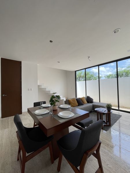 Privada exclusiva con sólo 16 townhouse, cuentan con un diseño modernista y calido,que llena de luz cada espacio de la casa.Área de recreación con un asador y un espacio de juegos infantiles.Portón electrico y puerta peatonal. Úbicados en una excelente zona de Cholul.