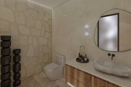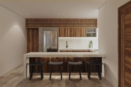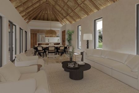 Diseñada para una vida armoniosa entre interiores y exteriores, esta villa ofrece un amplio patio techado que se extiende a lo largo de la casa, brindando espacios sombreados para relajarse y disfrutar del entorno tropical. Tiene un enorme jardín con alberca privada, terraza con jacuzzi y casita independiente, perfecta para usar como gimnasio o estudio. La casa cuenta con un techo de palapa, un detalle distintivo de los bienes raíces en la Riviera Maya, además de electrodomésticos modernos y acabados naturales que son duraderos y fáciles de mantener.