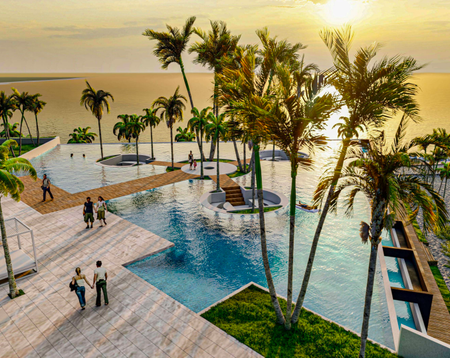Lo mejor de nuestra playa es que contará con un beach club privado con más de 15 amenidades, 500m de frente de playa, 38,025 m2 de piscina natural libre de motorizados, más de 750m de malecón privado, restaurante, bar ypalapas para relajarse.