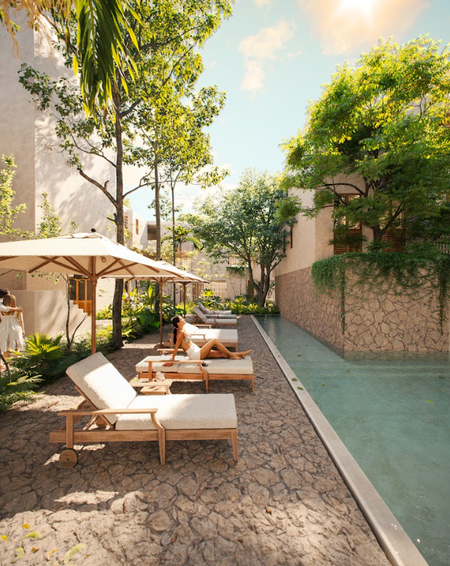 Alberca exterior, hamam, zona de hamaqueros, cine al aire libre, bodegas, lavandería, club de playa, paquetería, administración de renta de departamentos.