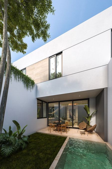 -Sala/comedor con vista al jardín, -Cocina integral, -Alacena, -Cuarto de lavado/servicio, -Piscina con acabado chukum 3x2.20, -Terraza techada.