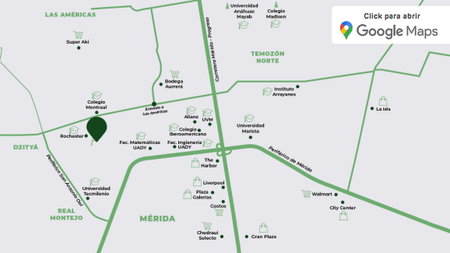 Convenientemente cerca de Universidades e institutos como Colegio Montreal, UVM, Alianz, Universidad del Mayab y super mercados, plazas comerciales.