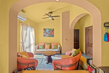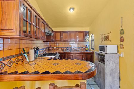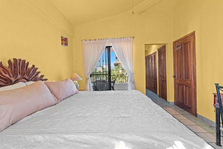 This charming 1 bedroom condo with a large bathroom is located on the 2nd floor or the boutique condo building of just 4 units in total. The condo has a partial ocean view from a spacious balcony outside of the bedroom and is only 1,5 blocks away from the beach. Tall ceilings and elements of Mexican hacienda style make this condo very unique and cozy. There are also laundry and dining areas in the unit. A private heated pool is shared by 4 units only, BBQ and a pool deck make this place quite an oasis in this sought after area in Bucerias. Everything you need is a short walk away including grocery stores, coffee shops, art galleries, gym, spas, variety of wellness studios, bus station, private hospital and vibrant yet calm night lifestyle of Bucerias´ Golden Zone.