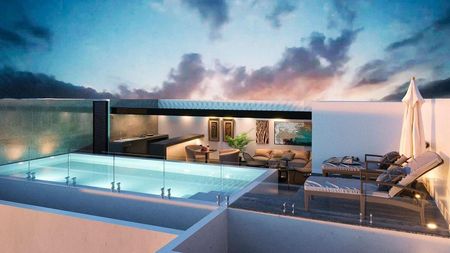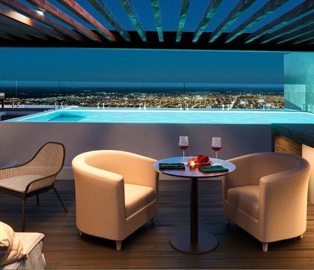 Roof deck con alberca, asoleado, terraza con barra en cada torre.