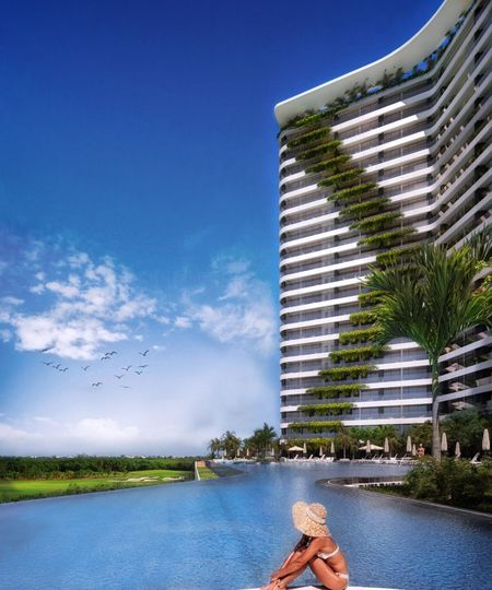 Único desarrollo de 204 departamentos en Puerto Cancún con un diseño vanguardista en 3 cuerpos de 20 niveles y 2 niveles de estacionamiento. En la PB se encuentran las amenidades. En el nivel de azotea se encuentran las energías renovables como torres eólicas y páneles solares que ayudan al consumo eléctrico.