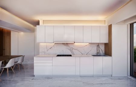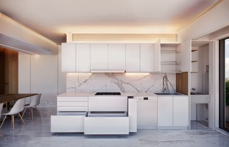 Cocina multifuncional y área de lavado de alta eficiencia.