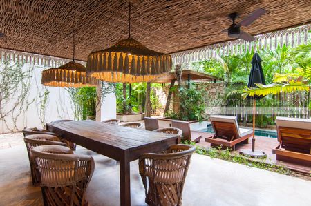 Este departamento en planta baja está ubicado en la exclusiva zona residencial de Aldea Zama, en Tulum. Este residencial se ubica a tan solo minutos del centro bohemio, la nueva carretera hacia la playa y la famosa zona hotelera con sus hermosas playas de arena blanca. Para los amantes de la naturaleza, las ruinas cercanas de Tulum y Cobá, así como decenas de impresionantes cenotes, ofrecen infinitas oportunidades de exploración y aventura.